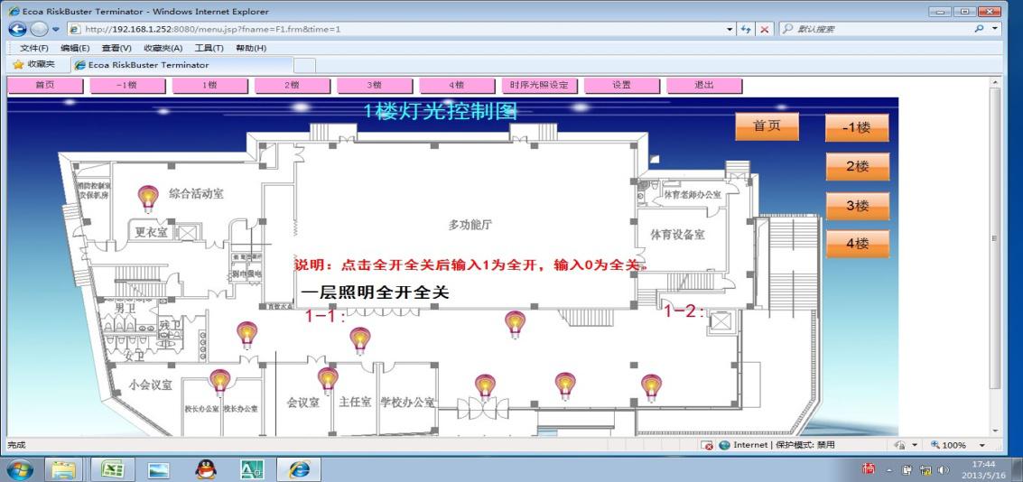 控制方式:現(xiàn)場面板及電腦遠程及無線終端回路控制和場景控制、定時控制。