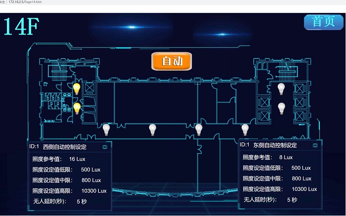 國網(wǎng)武漢供電公司電力生產調度大樓共25層,本次對每個樓層的走廊,大廳等公共區(qū)域進行燈光節(jié)能改造,整個項目由上海迪控專業(yè)工程師提供圖紙設計,指導施工布線及系統(tǒng)調試,由于大樓處于運營狀態(tài),整個改造過程不能影響用戶上班,所以選在夜間施工布線,夜間調試,白天上班即可投入使用。每層改造完畢后,最后整個大樓進行系統(tǒng)聯(lián)調。改造后可以實現(xiàn)以下功能:1)走廊燈光結合照度和人體感應進行組合控制,實現(xiàn)日照充足時,有人也不開燈,日照一般時,有人只開50%的燈,日照不足時,有人就開啟全部燈。2)每層電梯間配1個觸控屏面板,可以實現(xiàn)手/自動模式切換,手動模式下,人體感應控制失效,用戶可以一鍵隨意開啟不同的燈光場景模式;3)在中控室可以通過電腦管理整個大樓的公共區(qū)域照明,一旦發(fā)現(xiàn)異?;蛱厥馇闆r,可以遠程快速開啟燈光。