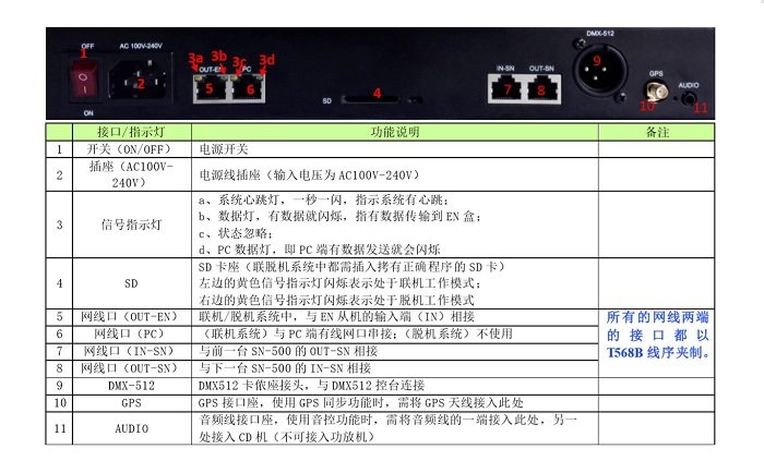 2、 DK2000-SN-500 作為主機(jī)(脫機(jī)系統(tǒng))時(shí),只需更換其 SD 卡的效果文件(不支持修改效果文件的名字),即可更換 同一鏈路下的 EN 控制盒的效果;
