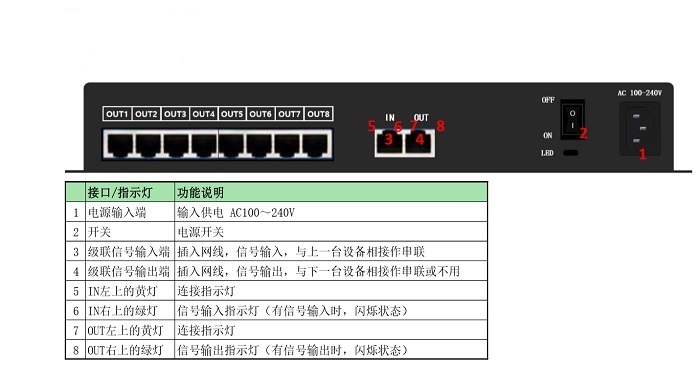 輸出功率: 5W 工作溫度: -15℃~60℃ 相對(duì)濕度: ≤50% RH 級(jí)聯(lián)方式: 并聯(lián)(手動(dòng)編址)