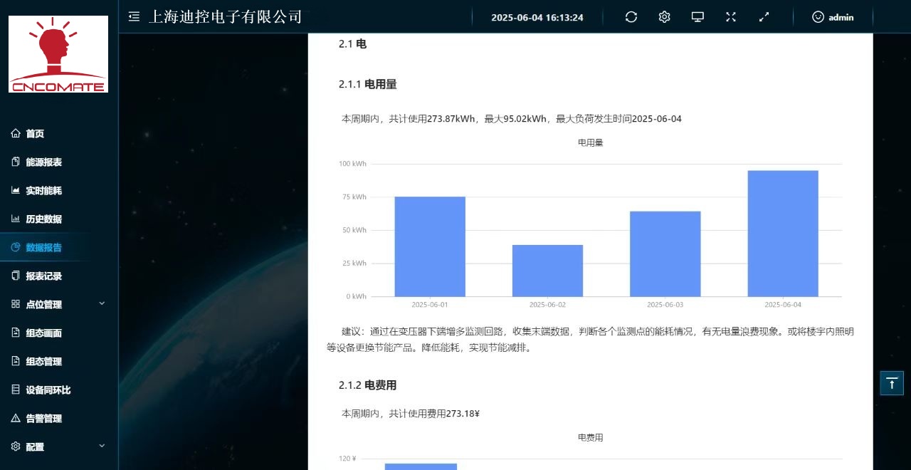 迪控能源管理平臺(tái)可以實(shí)現(xiàn)對(duì)水、電、燃?xì)?、?熱源等數(shù)據(jù)進(jìn)行采集計(jì)量、計(jì)費(fèi)、保存和歸類(lèi),并有高峰與低谷用電記錄,從而為能源管理提供了必要條件。同時(shí)對(duì)電能按照明插座用電、動(dòng)力用電、空調(diào)用電、特殊用電進(jìn)行分項(xiàng)計(jì)量,為企、事業(yè)單位電能節(jié)能審計(jì)提供依據(jù)。經(jīng)過(guò)分析計(jì)算,能源數(shù)據(jù)可以各種形式(表格、餅圖、柱狀圖等)加以直觀的展示。