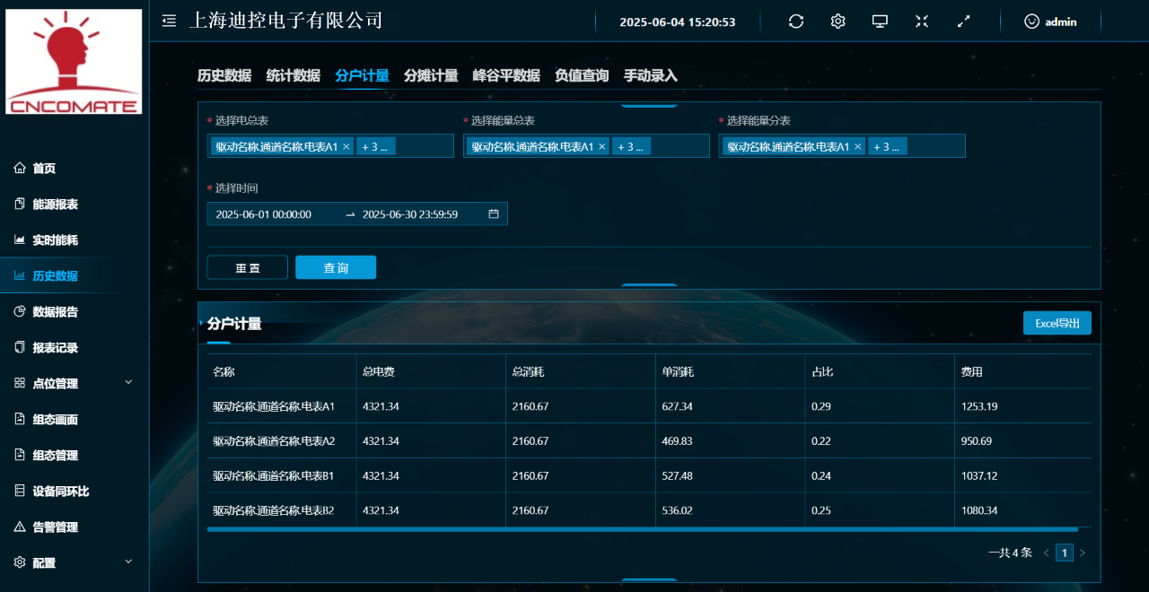 迪控能源管理平臺(tái)可對(duì)設(shè)備數(shù)據(jù)進(jìn)行分項(xiàng)計(jì)量。其軟件運(yùn)行于windows操作系統(tǒng),包括windows sever 2012 X64、win7 X64、win10 X64等系列操作系統(tǒng)。